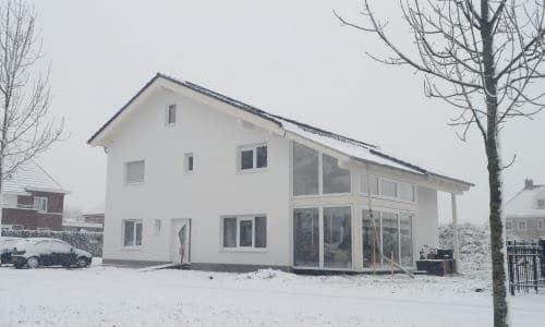 Im Juli diesen Jahres begann der Bau des ersten Bio-Solar-Hauses in den Niederlanden. Zwischenzeitlich ist einiges passiert: Das Haus ist fertig gedämmt und verputzt, Fenster und Wintergarten sind eingebaut.