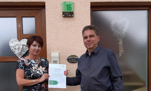 Das Bio-Solar-Haus der Familie Beußhausen wurde von der Energieagentur Niedersachsen und dem Landkreis Göttingen mit der "Grünen Hausnummer" für energieeffizientes Bauen und vorbildliches Engagement für den Klimaschutz ausgezeichnet.