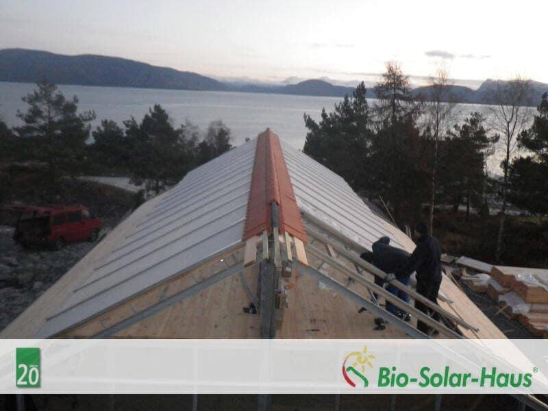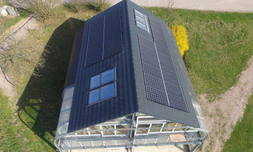Um weitere Erfahrungen mit Sandwich-Dachelementen zu sammeln wurde die Sicherheitsgelasung auf dem Dach des Informationszentrums entfernt und durch Sandwich-Dachelemente mit darauf befindlichen PV-Modulen ersetzt