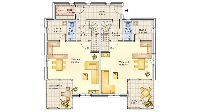 Durch eine individuelle Hausplanung muss ein Doppel- oder Reihenhaus nicht zwangsläufig "langweilig" sein. Sowohl außen als auch innen können viele Wünsche für ein angenehmes Wohnen eingeplant und realisiert werden: