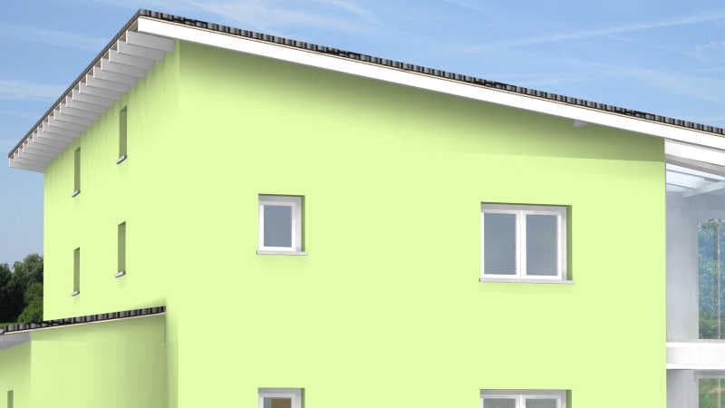 -Einsparung von Glas und Putzfläche durch das benachbarte Doppelhaus