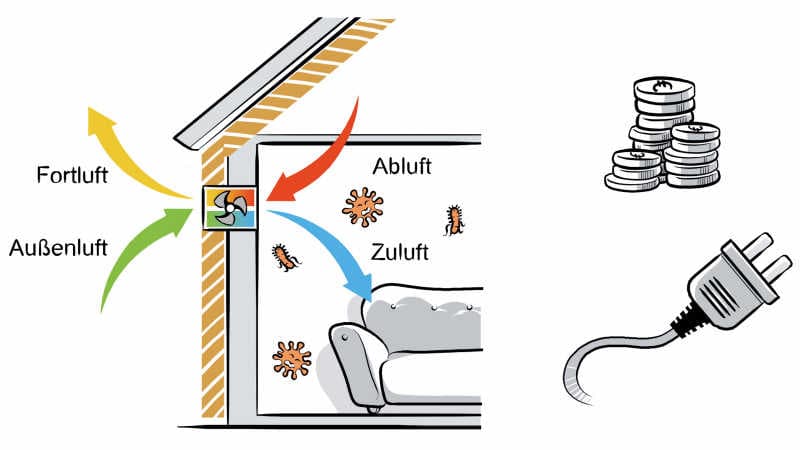 - Keine Wohnraumlüftung, wie sie Passivhäuser besitzen