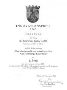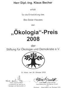 Zahlreiche Preise und Urkunden sprechen für das Bausystem Bio-Solar-Haus!