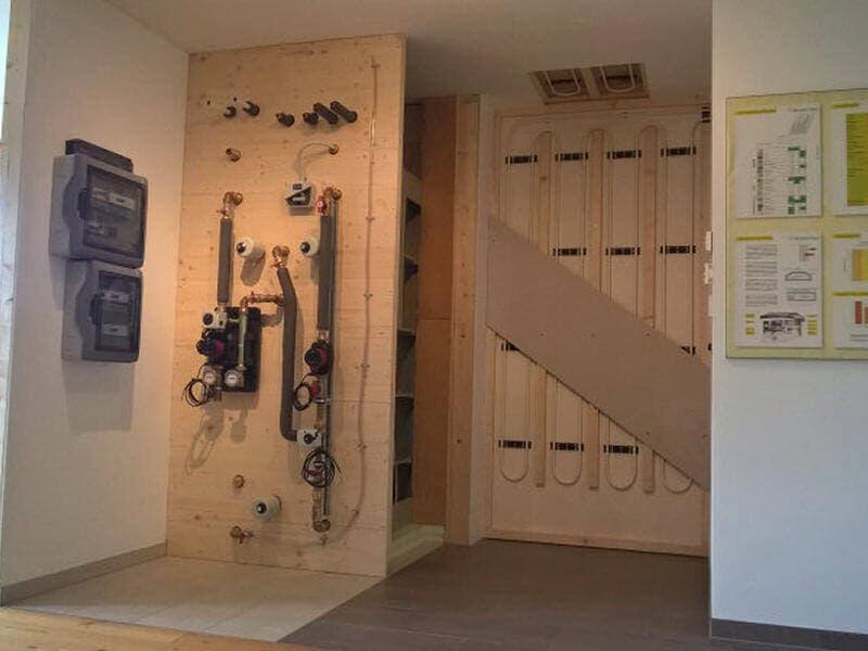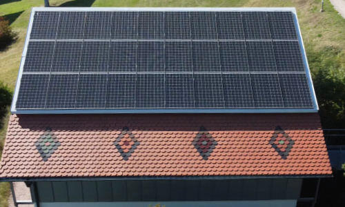 Um weitere Erfahrungen mit Sandwich-Dachelementen zu sammeln wurde die Sicherheitsgelasung auf dem Dach des Informationszentrums entfernt und durch Sandwich-Dachelemente mit darauf befindlichen PV-Modulen ersetzt